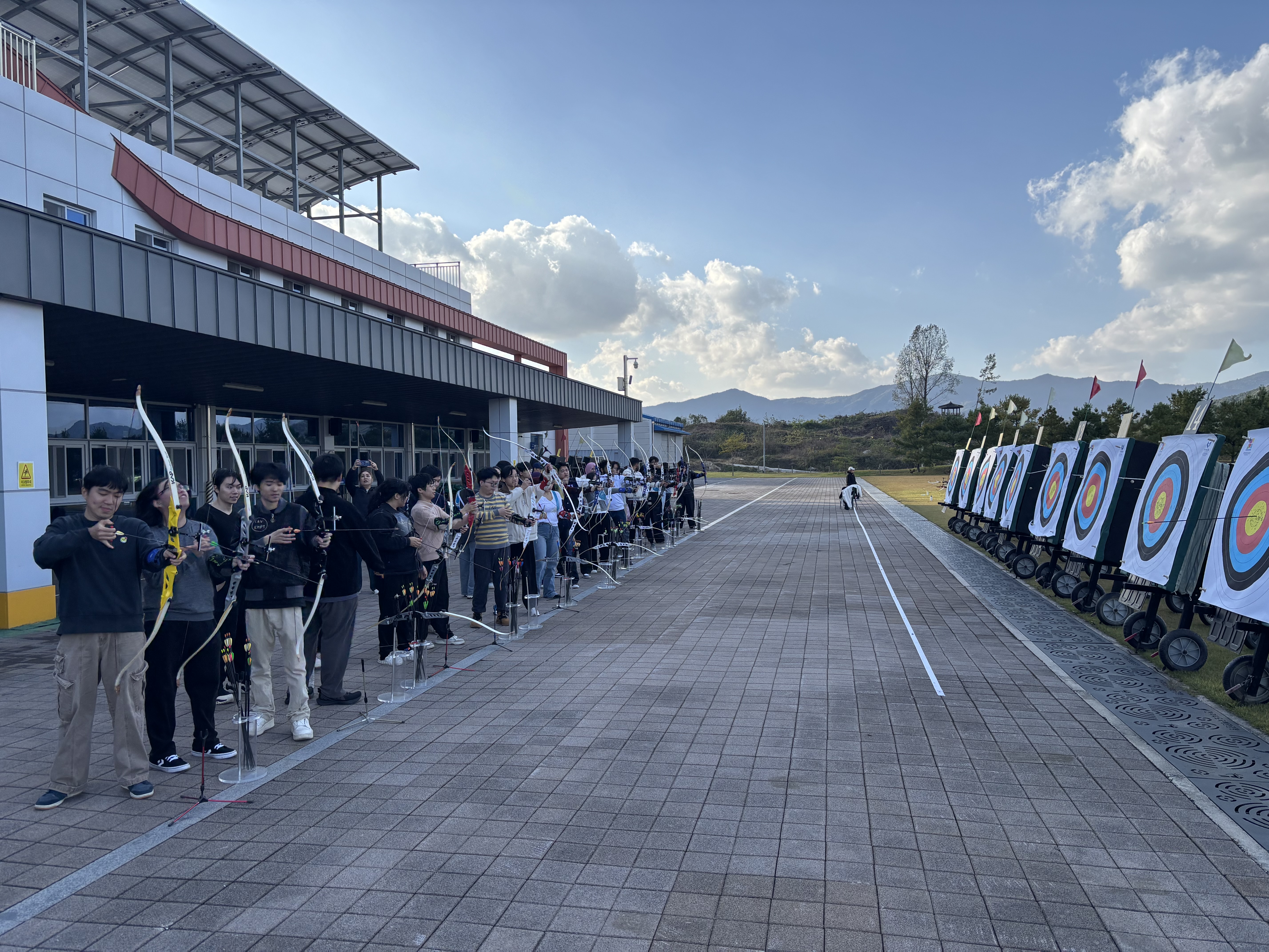 지난주 토요일(25.11.05)일에 홍익대학교 학생들이 30명 단체로 저희 임실군 양궁스포츠클럽을 방문하였습니다!